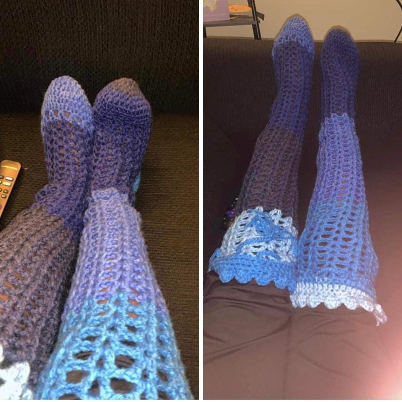 I don't know if there is anything cuter than these custom made socks from Hooked with Laura!!! I got my cousin a pair for her birthday and I picked up my seconds pair today!! She crochets them to your exact measurements!!!